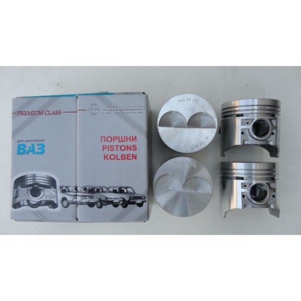 Поршні призначені для встановлення в двигуни автомобілів ВАЗ 2105. Виготовлені з високоякісного алюмінієвого сплаву, що забезпечує легкість, міцність і ефективне тепловідведення. Точна геометрія поршнів гарантує стабільну компресію, плавну роботу двигуна та зменшене зношування циліндрів. Розмір 79,0 мм (A) використовується при ремонтних і відновлювальних роботах двигуна. Комплект містить 4 поршні.